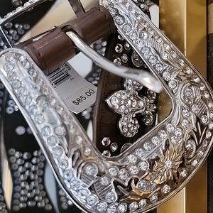 Nocona Fleur de lis Ryan stone studded belt on leather This belt has beautiful weight and is made wonderfully 5 notches