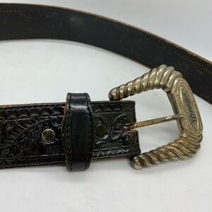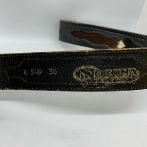 Nocona Flower Embossed Calf Hair Leather Belt with Silver Tone Buckle K549 SZ 36