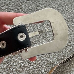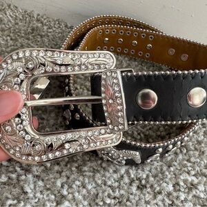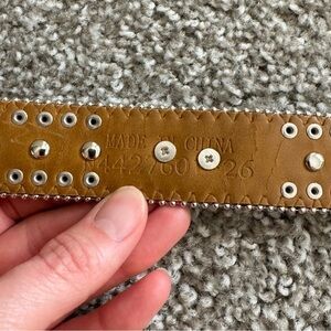Nocona Leather Belt 26 Black Studded Rhinestone Sliver Bling Cowgirl Y2K Boho
