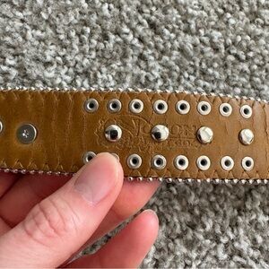 Nocona Leather Belt 26 Black Leather Studded Rhinestone Sliver Bling Cowgirl Y2K Western Rodeo Festival