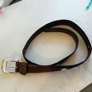 COWBOY, WESTERN, BELT,BLACK, BROWN, LEATHER, SILVER BUCKLE,SILVER CONCHOS,RODEO,SHOW,HORSE,RANCH,