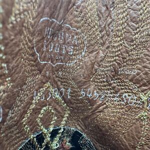 Classic craftsmanship meets rugged western style in these Nocona men’s cowboy boots. Handcrafted in Mexico, they feature a rich brown ostrich-print leather foot and tan shaft with multicolor stitched patterning. Built for durability and comfort, these boots embody the true spirit of Western wear.