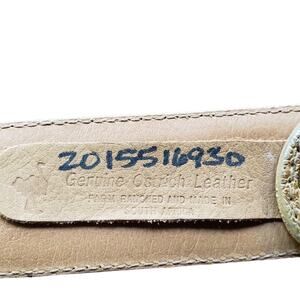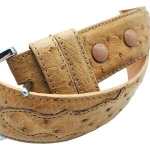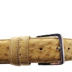 Beautiful leather belt from Nocona. The tan color ostrich leather belt has silver tone hardware. My first couple photos are the closest in color.