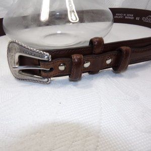 The popular ranger belt from Nocona. Ranger leather overlay design. Finished with leather arrow lacing detail. Fancy silver-tone buckle with roped edge. To determine your belt ...