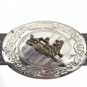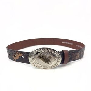 Nocona Western Rodeo Tooled Leather Belt Boys Size 24 Big Buckle Youth Bull Rider Brown