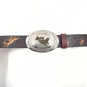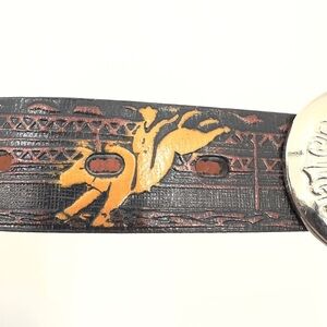 Nocona Western Rodeo Tooled Leather Belt Boys Size 24 Big Buckle Bull Rider