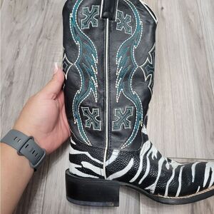 Nocona ladies safari rancher boots white tiger ray foot sz 5 can fit 5 1/2