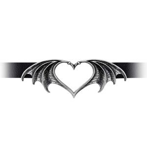 Nocte Amor Leather Gothic Heart Bat Wings Choker NWT