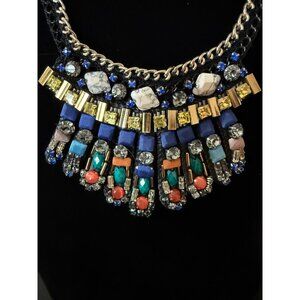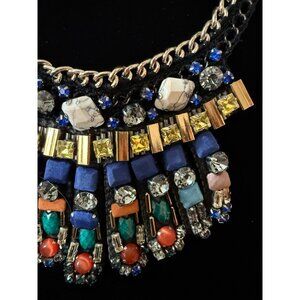 Nocturne Anthropologie Multicolor Statement Necklace w/ Chain & Gemstone Accents
