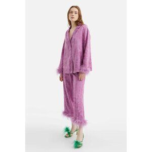Nocturne Button Down Feathered Shirt Pants Matching Set Lilac Purple Womens Size