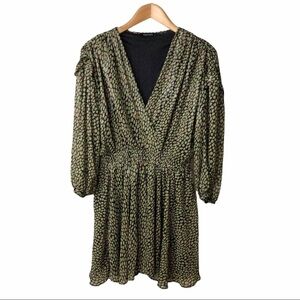 Nocturne Mini Wrap Dress Printed Size 42 Green Long Sleeve Elastic Waist