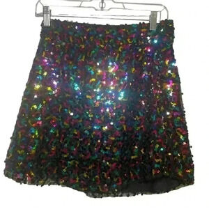 Nocturne Sequin Mini Skirt NWT Size S Black Multicolor Sparkle Lined 17”