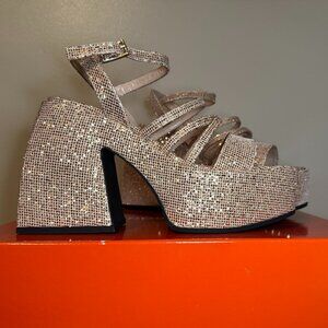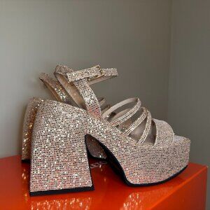 BRAND NEW, never worn, still in box. These are the heels you dream about but rarely find in this condition. The iconic Bulla Chibi silhouette plus that stunning blush shimmer = a total knockout.