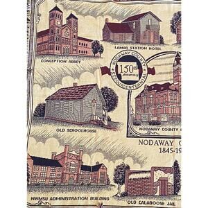 This heavy, thick, nice quality throw blanket features pictures of historic sites in Nodaway County, MO. "150th Anniversary". And measures approx. 62" x 50". (See pictures for historic information)