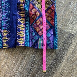 -Geometric pattern, main color navy blue, elastic waistline, measurements in photos