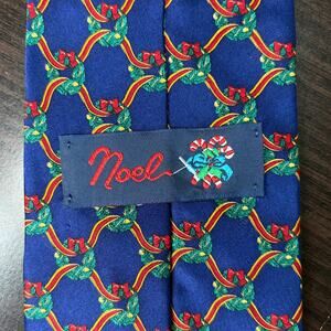 Noel Christmas Tie 100% Silk Blue Wreaths Holiday Festive Wrokwear Office Fun