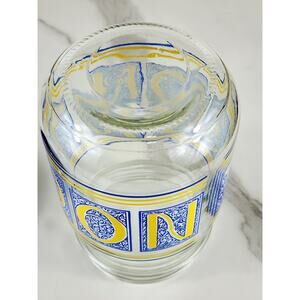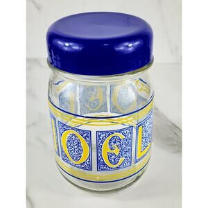 Noel Glass Canister Jar Cookie w/ Blue Lid 7" x 4 1/2" Container Storage