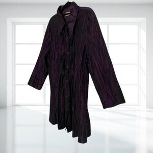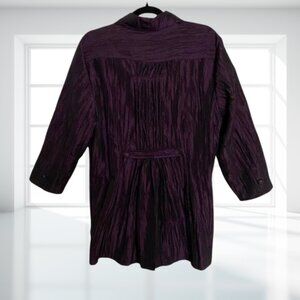 Noelle Plus Size 16 / 18 Crinkle Pleated Deep Plum Purple Long Button Down Shirt Tunic Jacket Top