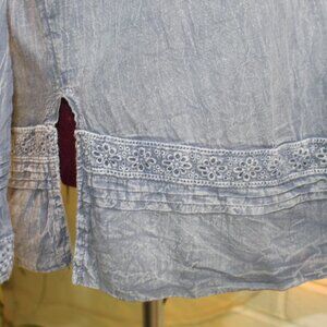 Noelle Vintage Washed Tunic Top – Rustic Blue Pullover – L/XL