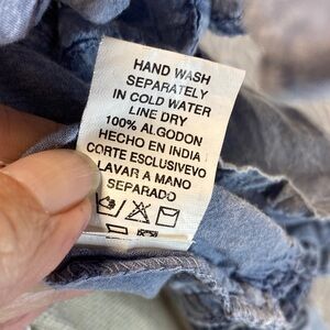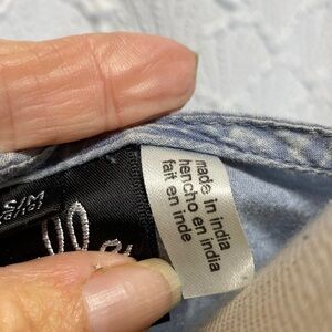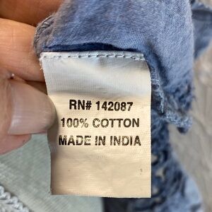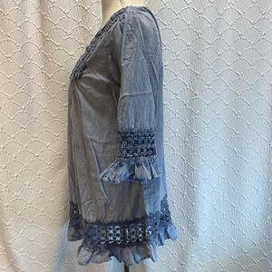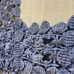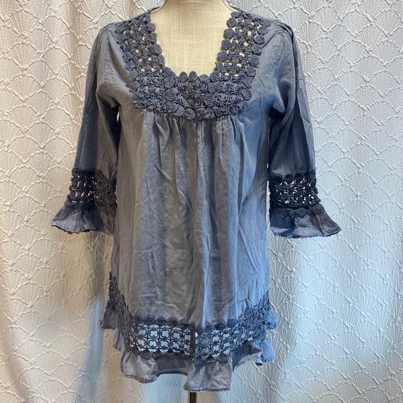 Noelle size s/m Blue Crochet lace neckline hem and sleeves 100% cotton