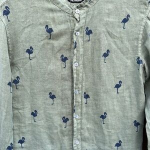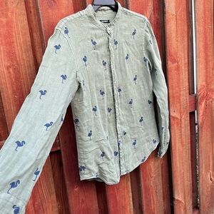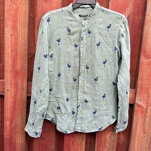 Nohow Men's Green Flamingo Print Shirt Size M