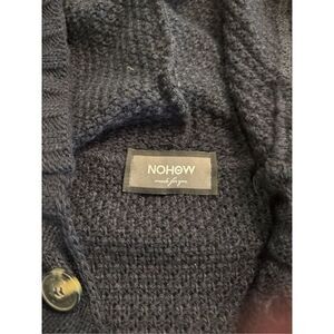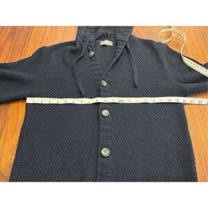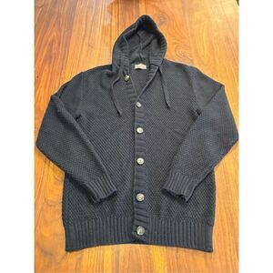 Nohow Men's Dark Blue Button Front Knit Hooded Cardigan Sweater Medium