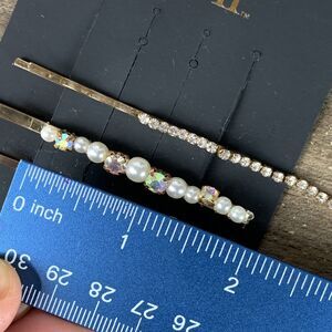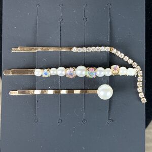 Description: Nordstrom Noir Gold Pearl Beaded Set Of 3 Bobby Pins Hair Accessory Rhinestone