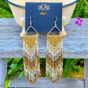 Noir Jewelry Gold & White Beaded Dangle/Fringe Earrings. NWOT