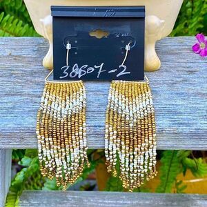 Noir Jewelry Gold & White Beaded Dangle/Fringe Earrings. New With Out Tags (NWOT)!