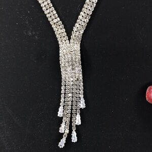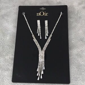 Noir Rhinestone Cascading Neckace and Earring Set New