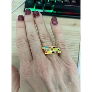 Noir Three Stackable Rings with Colorful Enamel, Size 7