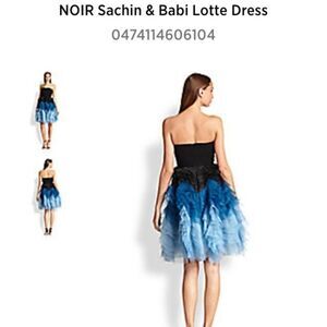 Amazing dress by Noir Sachin Babi. Black strapless top. Multi tier blue ruffles on bottom. Size 4. Worn twice and dry cleaned. Perfect condition.