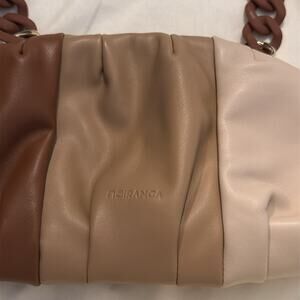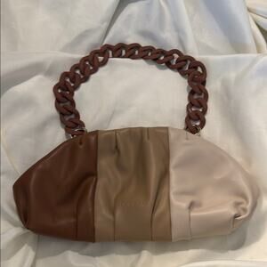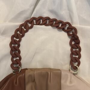 Brown, white and tan colorblock purse. Brown chain strap with gold hardware.