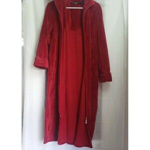 Noire Jasimine Rose Long Robe Long Sleeve Zip Front Pockets Polyester Red Size M