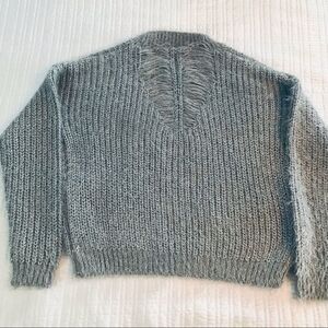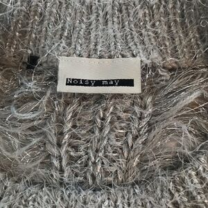 Noisy May Gray Fuzzy Crew Neck with Silver Sparkle Thread and Feathered Back