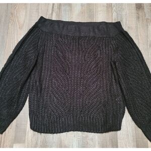 Noisy May Knit Crochet Black Sweater Size Medium Off Shoulders Boho