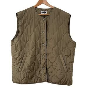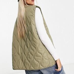 Noisy May Onion Quilted Oversized Vest Size XL Green Women’s NEW