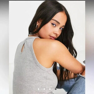 Noisy May Ribbed Halterneck Tank Top Gray Small