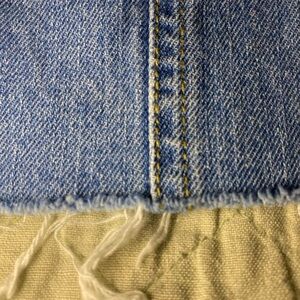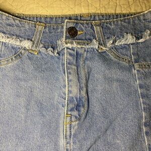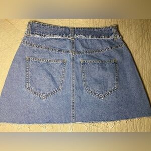 Cute mini skirt, denim with medium wash. Raw hem, distressing under waistband. Wonderful condition!