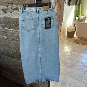 Noisy May Rinna Colorblock Front Slit Denim Midi Skirt