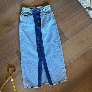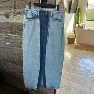 Item - Rinna Colorblock Front Slit Denim Midi Skirt