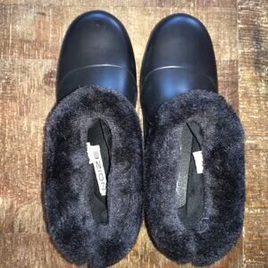 This is a pair of Noize Fur LIned Rain Boots in color Black. Womens size EU 37. US 7. This Canadian brand is known for their outdoor and cold weather clothing and shoes. Fur lined upper, fleece lined. Padded insole. PVC outer and sole. Vegan.Cruelty Free. 2" hidden heel. 1.5" hidden platform. 7" shaft from sole. Condition as seen in pictures. Waterproof.