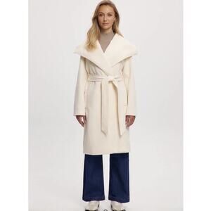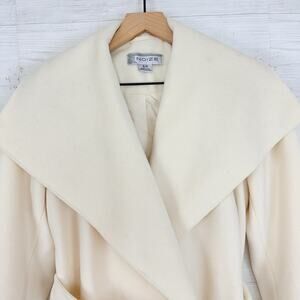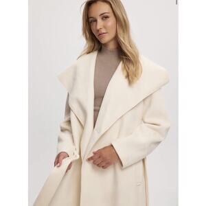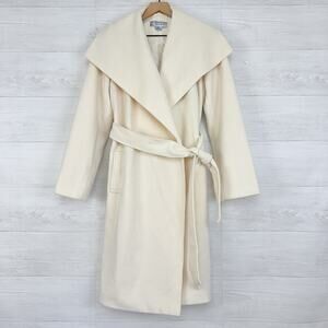 Noize Lena Long Length Vegan Wool Coat Size Small Off White Belted Classic Soft