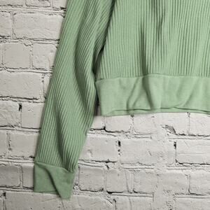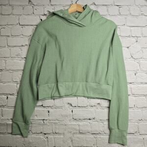 Noize Rubi Ribbed Cropped Hoodie Green Sage Dropped Shoulder Loose Fit Size Med