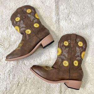 Nokio Iconic Flower Embroidered Brown Yellow Mid Calf Western Cowgirl Boots US 8