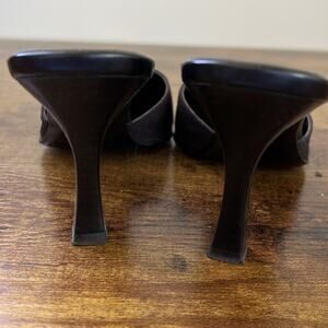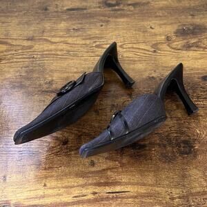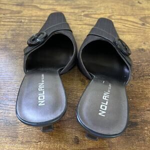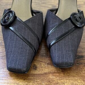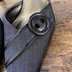 Nolan Belk Black Striped Large Button “Zachary” Fabric Upper Mules
