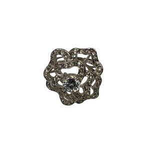 Nolan Miller Clear Crystal Rose Flower Cocktail Statement Ring Silver Tone - 9
