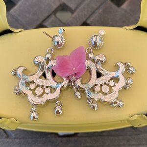 Nolan Miller Crystal Chandelier Earrings Silvertone Rhinestone Dangle Drop EUC!