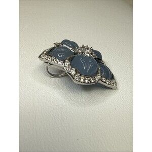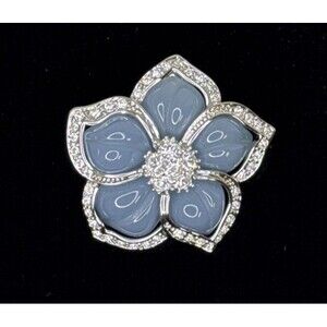 Vintage Nolan Miller Crystal French Blue Flower Slide Pendant Enhancer Silver Tone