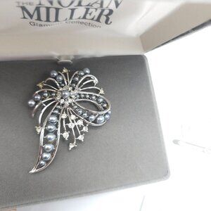 Nolan Miller Glamour Collection Brooch With Faux Gray Pearl Crystal in Box